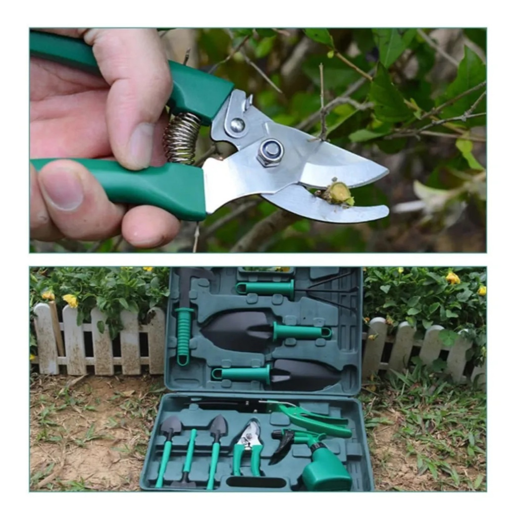 Tudo à mão: a maleta compacta reúne pás, ancinho, tesouras e ferramentas especializadas em um único lugar. Nunca mais perca tempo procurando ou improvisando.